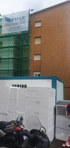 MAR EDIFICACION ha comenzado la instalación del sistema de aislamiento térmico exterior, SATE, en toda la fachada de la obra del edificio de la calle Grupo Pinares A3