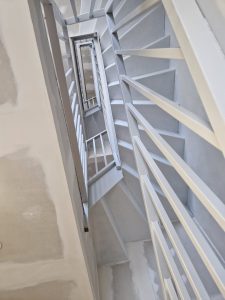 Se trata de la instalación de un ascensor que, debido al poco espacio existente en el propio portal de edificio, tanto la escalera como el propio ascensor se van a ubicar en el exterior del edificio. Será un ascensor para 5 plantas y al haber concedido el Ayuntamiento la colocación en el exterior podrá ser un ascensor grande