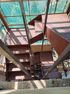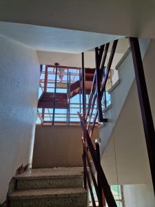 Ya se ha terminado de instalar la escalera exterior, y a continuación se procederá a picar la escalera interior para crear los pasillos y el hueco del ascensor.