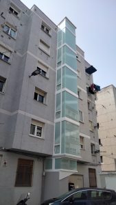En este caso se trata de la instalación de un ascensor en el interior del edificio construyendo la escalera en el exterior del mismo. Ha sido una obra similar a la del número 3 de la misma calle que realizó también MAR EDIFICACION.
