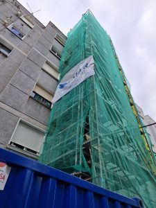 Ha consistido en la instalación de una escalera mecánica autoportante, que se sujeta ella sola y no carga el peso contra el edificio. Ahora, MAR EDIFICACION empezará el derribo y a picar los forjados donde se ubicará la columna por donde se deslizará el nuevo ascensor