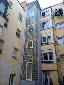Como puede verde en las fotos las escaleras se han colocado en la parte trasera del edificio, que da a un patio de manzanas