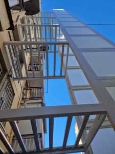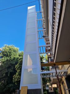 MAR EDIFICACION ha terminado la instalación de la torre donde irá el ascensor en nuestra obra de la calle San Maximiliano.