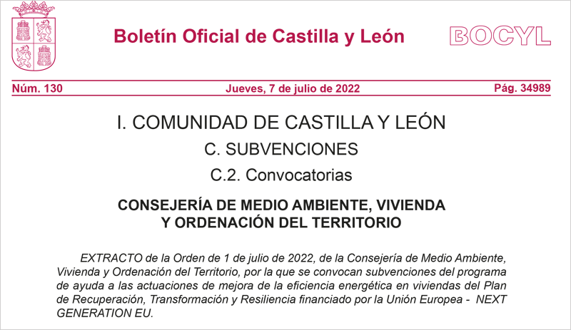 La Junta de Castilla y León ha convocado ayudas para la rehabilitación de edificios y la mejora de la eficiencia energética en viviendas por un montante total de más de 37,5 millones de euros provenientes del Plan de Recuperación, Transformación y Resiliencia de los fondos Next Generation EU. Así lo explicó el consejero de Medio Ambiente, Vivienda y Ordenación del Territorio, Juan Carlos Suárez-Quiñones, en una rueda de prensa que tuvo lugar el pasado día 8 de Julio en la sede de la Consejería en Valladolid.